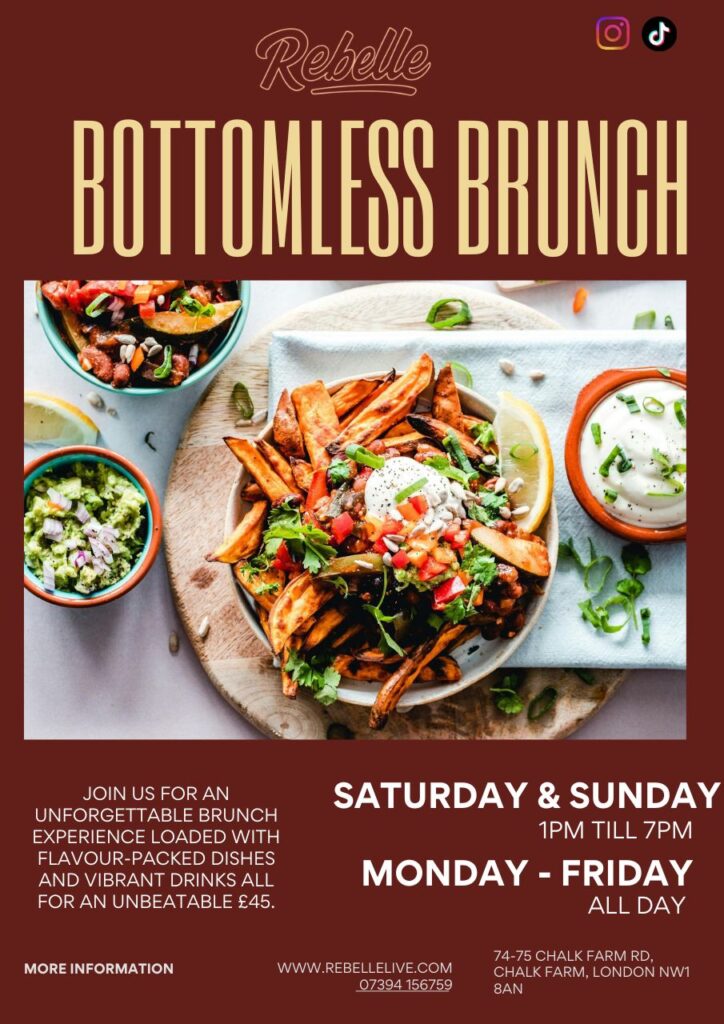 Join us for a Bottomless Brunch every Saturday & Sunday (1 PM – 7 PM) and Monday – Friday all day. Delicious dishes and drinks await!
